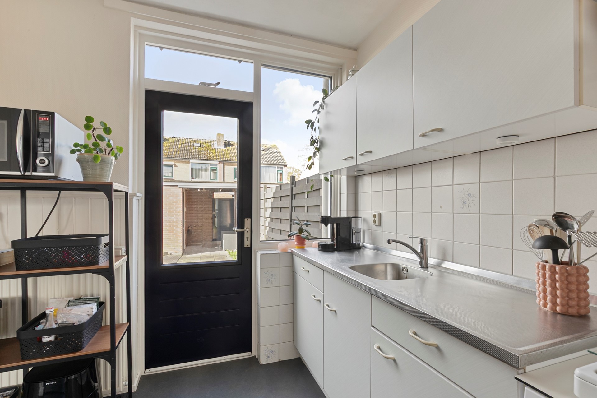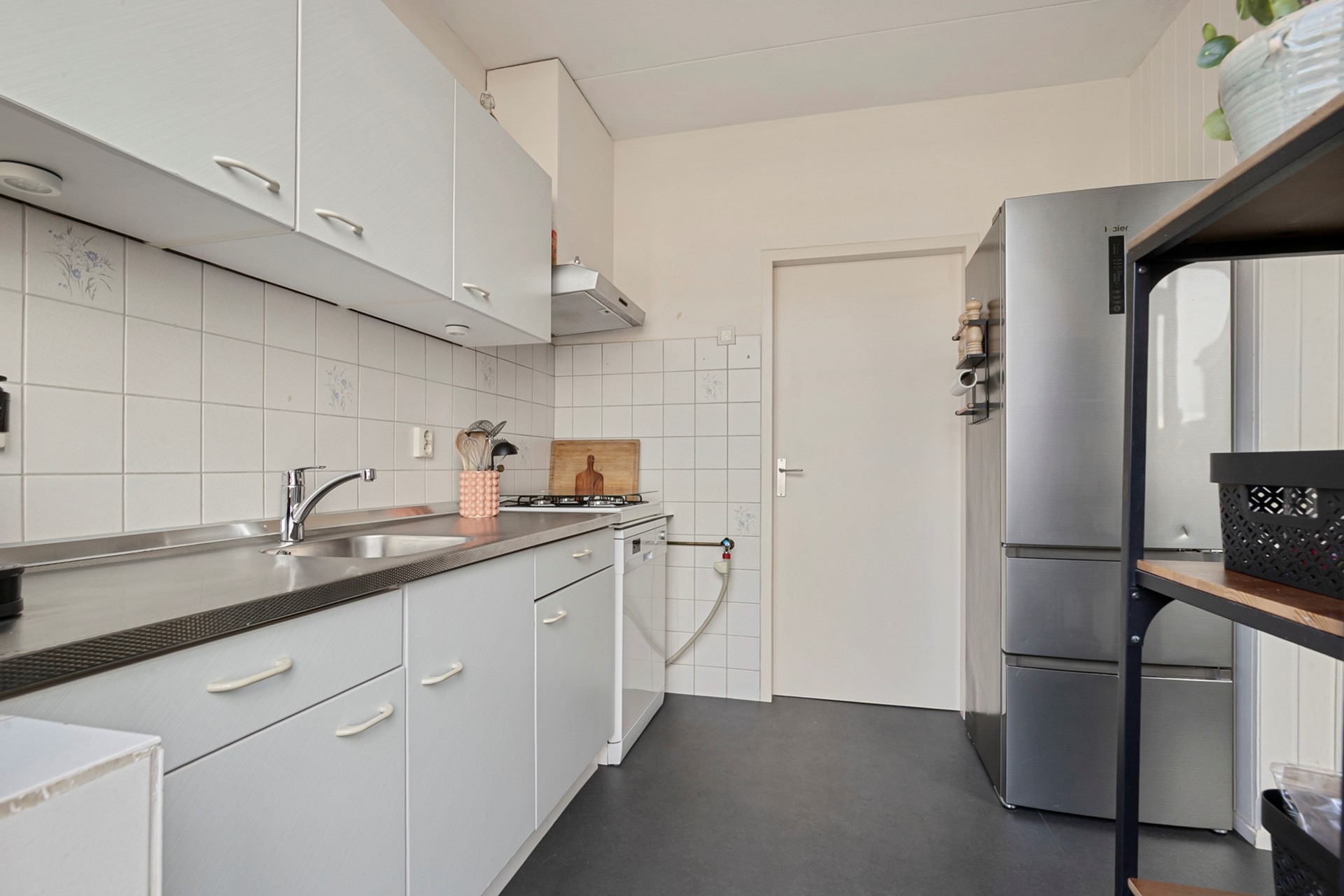 De lichte woonkamer is prettig van formaat, perfect voor lange filmavonden, gezellige etentjes of gewoon lekker even niks. Met een beetje liefde en wat kluswerk kun je het helemaal naar je eigen smaak brengen. De keuken en badkamer zijn eenvoudig, dus als je ervan houdt om de handen uit de mouwen te steken, liggen hier kansen voor het oprapen! Zet je creativiteit aan het werk en maak er iets moois van. Op de vloer in de woonkamer ligt vinyl, de woning is voorzien van rolluiken en aan de voorzijde hangt een zonnescherm.