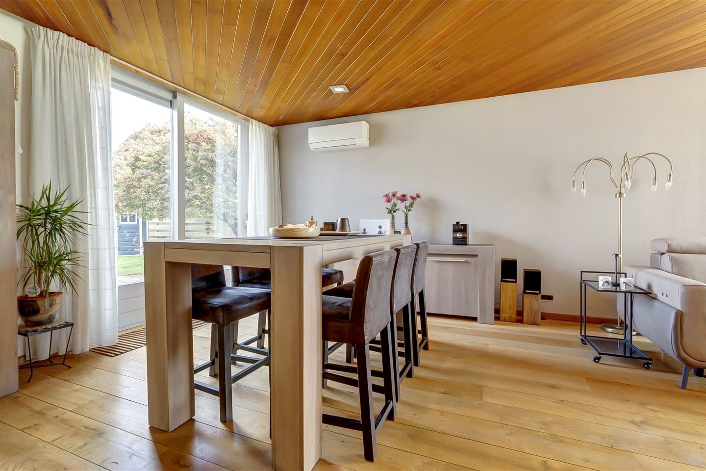 Vrijwel alle kozijnen zijn van kunststof. Wel zo makkelijk in onderhoud! Alleen de schuifpui is van hout, waardoor je net dat warme, authentieke gevoel behoudt als je de tuin in stapt.