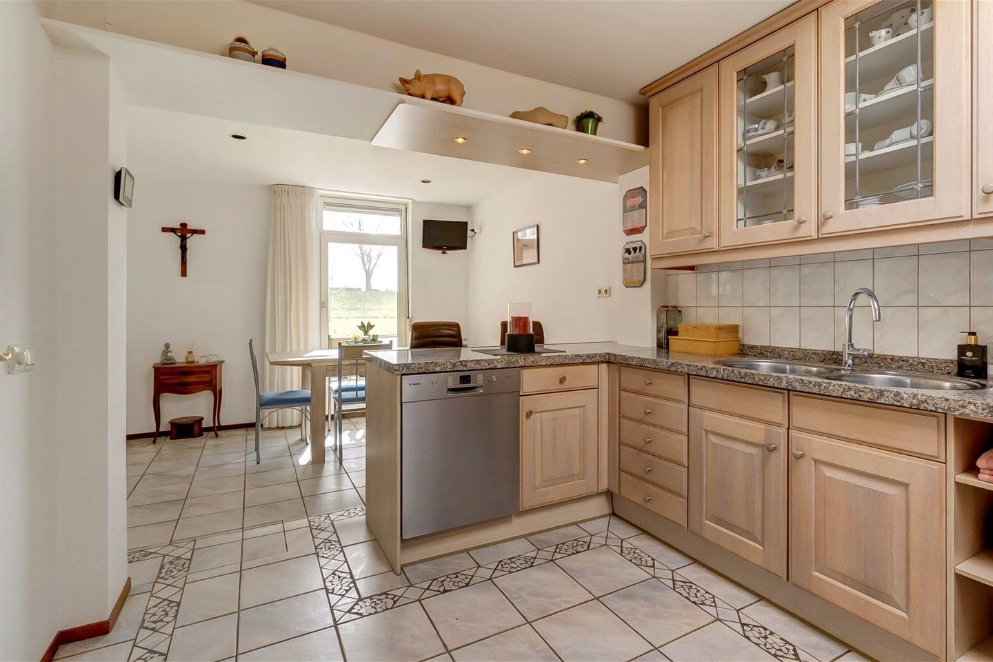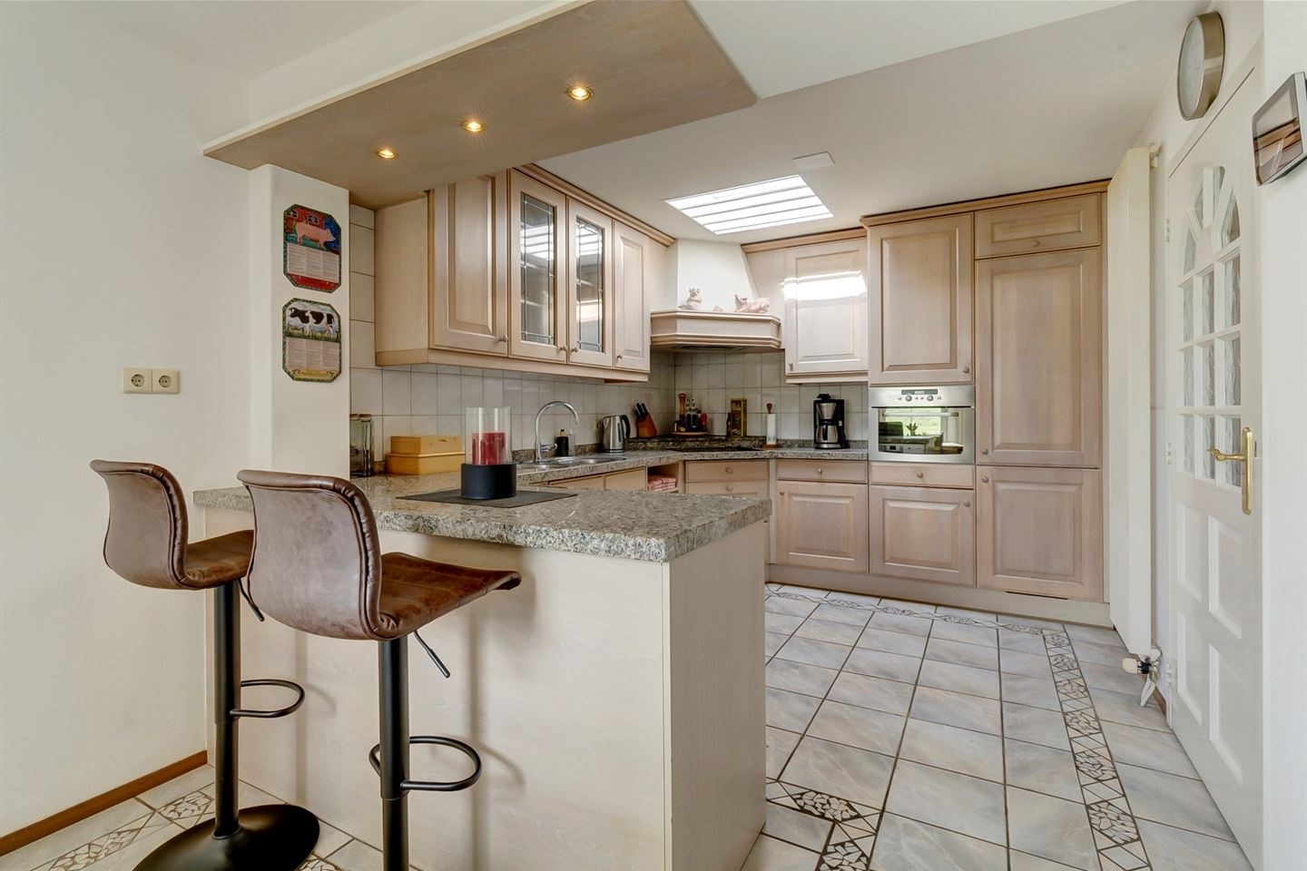 De ruime woonkamer heeft een gezellige houthaard en schuifpui. De eikenhouten vloer is nog in goede staat maar kan eventueel geschuurd worden en kun je naar wens een andere finish geven. In de keuken is er ook nog extra ruimte voor een eettafel. De keuken is voorzien van een granieten aanrechtblad, een kookplaat, een koelvriescombinatie en heel veel werkruimte. Door de lichtkoepel valt hier extra veel daglicht naar binnen. Via de hal bij de achterdeur kun je tevens naar de bijkeuken. Van buitenaf is de tweede berging met 3 inbouwkasten te bereiken.