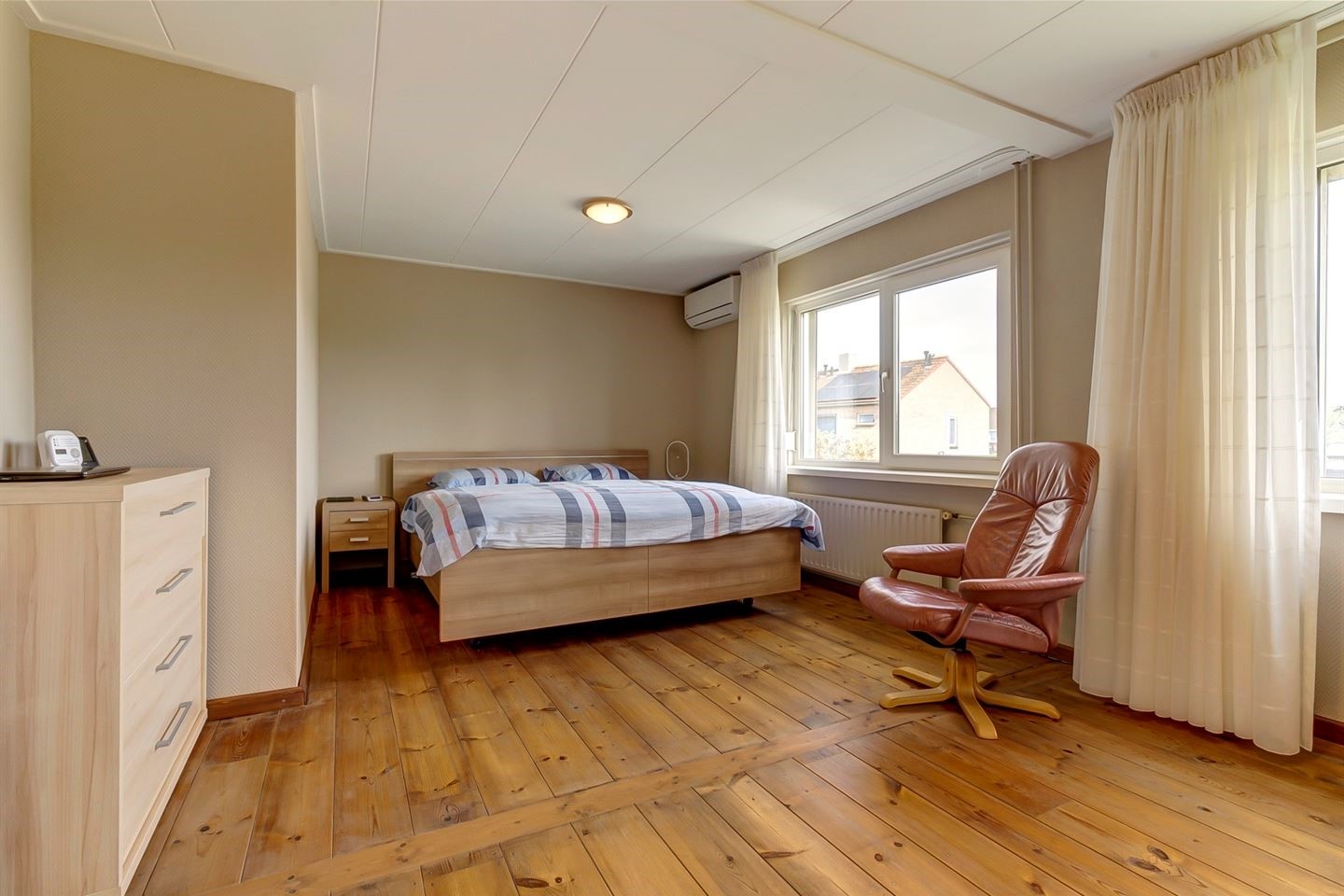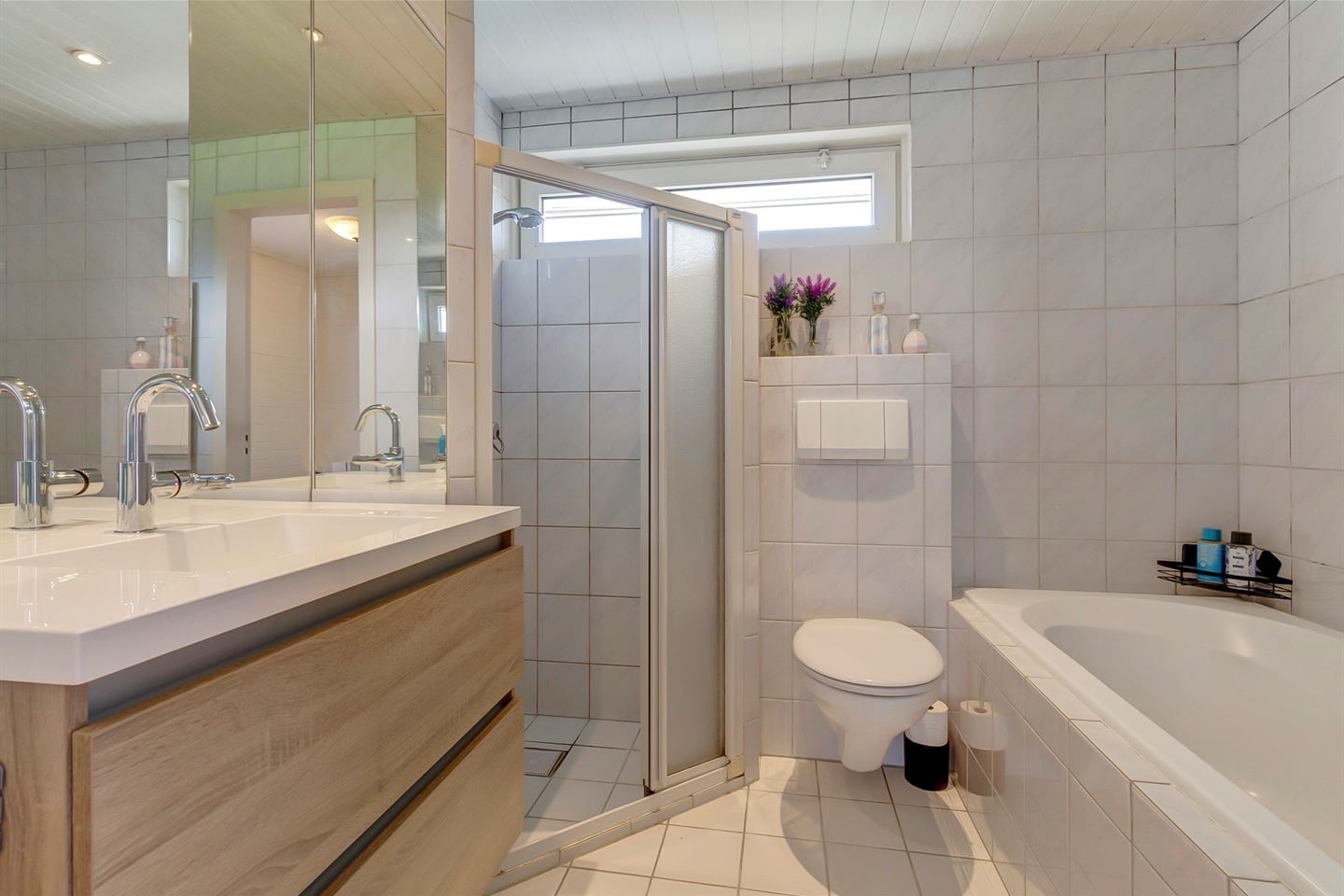 Boven zijn er 2 slaapkamers; een grote en een kleinere. De grote kamer was oorspronkelijk verdeeld in 2 kamers. Dit zou eventueel weer terug in de oude situatie kunnen worden gebracht. De badkamer heeft een toilet, een ligbad, wasmeubel en douchecabine.
