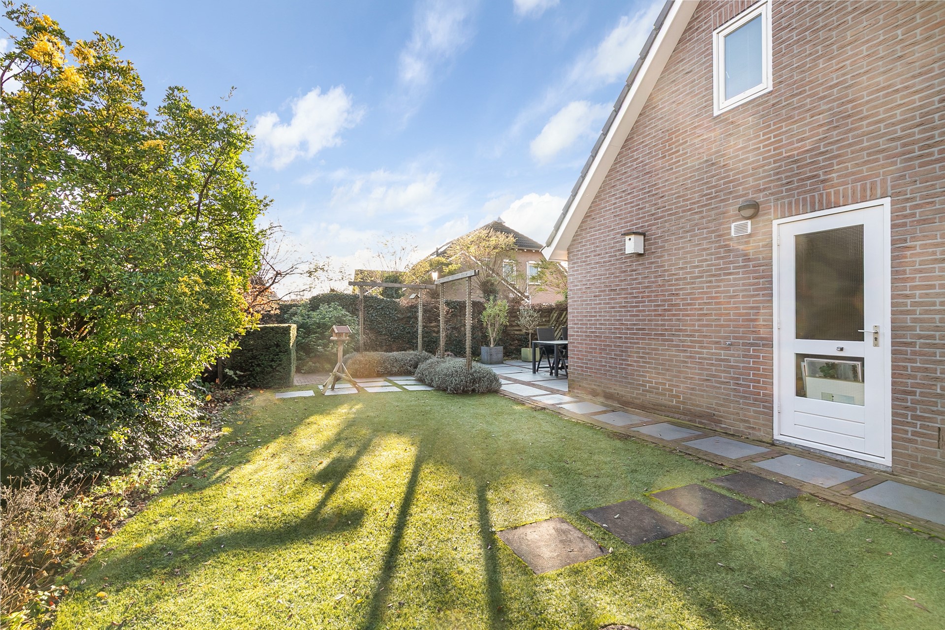 Met een perceel van maar liefst 430 m² kun je hier alle kanten op. De tuin springt direct in het oog: 256 m² aan achter- en voortuin. Of je nu een trampoline voor de kids wilt, een moestuin wilt beginnen of 's zomers lekker lang wilt tafelen met vrienden: de mogelijkheden zijn eindeloos! Bovendien kijk je vanuit de woonkamer zo het groen in. Het elektrisch uitvalscherm boven het terras zorgt ervoor dat je ook op zonnige dagen heerlijk beschut buiten zit.